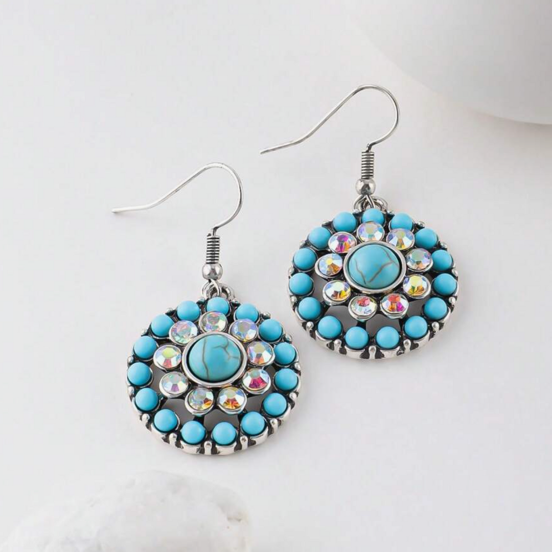 Vintage Gold Inlaid Turquoise Stone Earrings