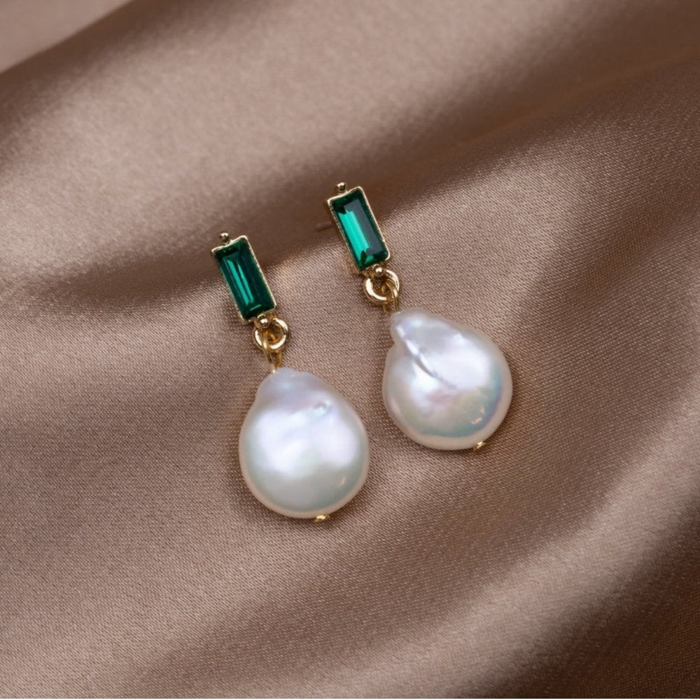 Luxurious Gold Earrings with Pearls and Green Zirconia