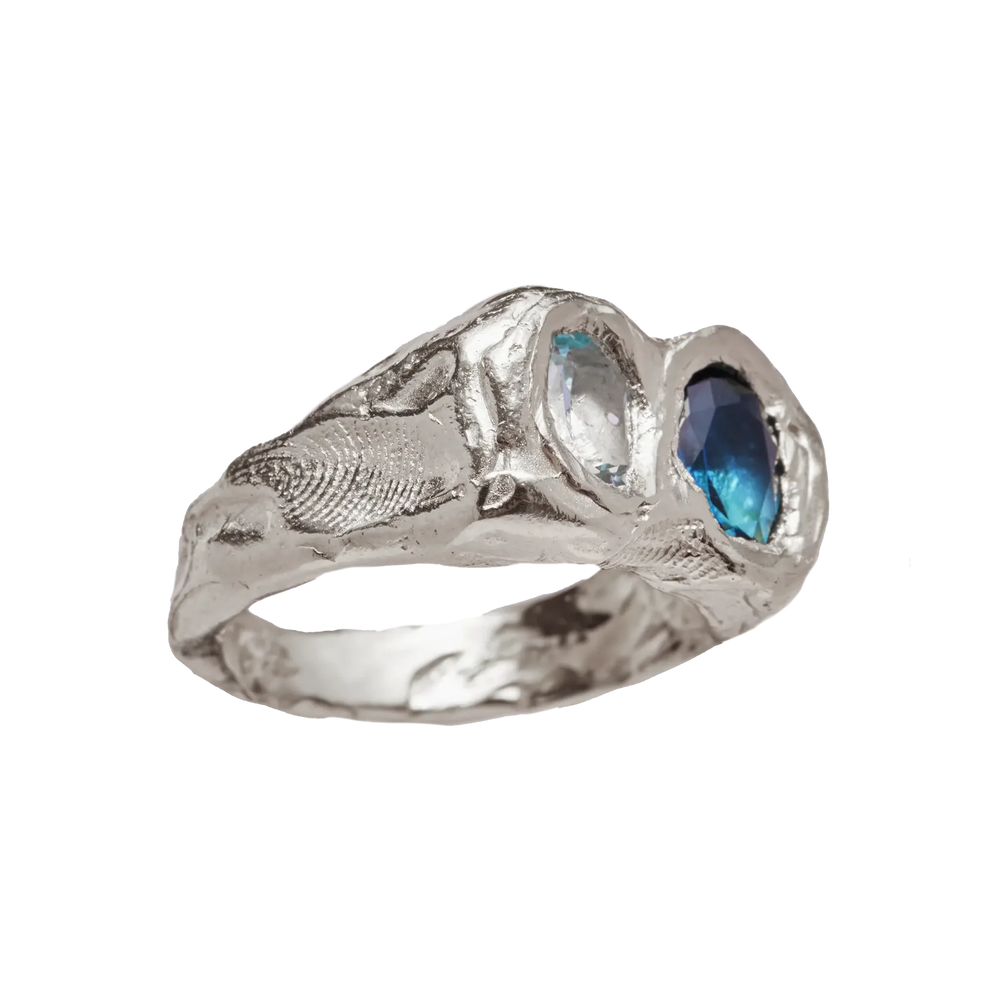 Vintage Blue Glass Gold & Silver Zirconia Ring